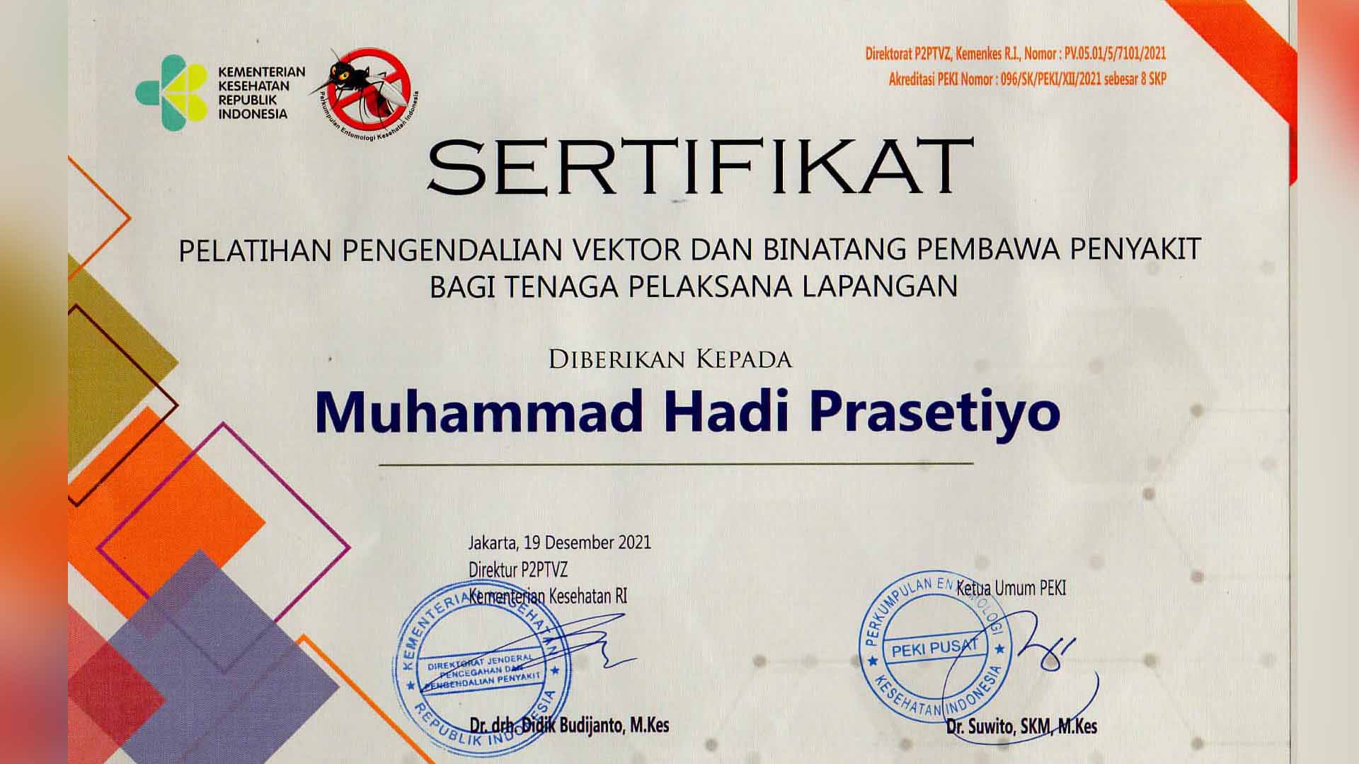 Sebagai jaminan kualitas pelayanan, seluruh petugas Pest Control PT. Sumber Resik Indonesia sudah mendapatkan pelatihan & sertifikasi dari Kementerian Kesehatan.